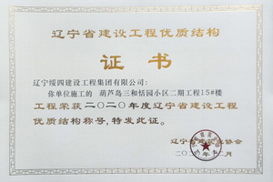 “葫蘆島三和恬園小區(qū)二期工程6#樓”榮獲2020年度遼寧省建設(shè)工程優(yōu)質(zhì)結(jié)構(gòu)稱(chēng)號(hào)