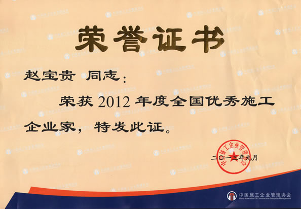 全國優(yōu)秀施工企業(yè)業(yè)家