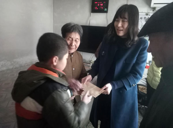 2018年3月6日,集團(tuán)工會主席劉霜、造價(jià)部部長明輝、財(cái)務(wù)部呂賀及實(shí)驗(yàn)小學(xué)趙瑞如老師等四人來看望慰問實(shí)驗(yàn)小學(xué)貧困學(xué)生信博,并送去米、面、油等生活用品及助學(xué)金。