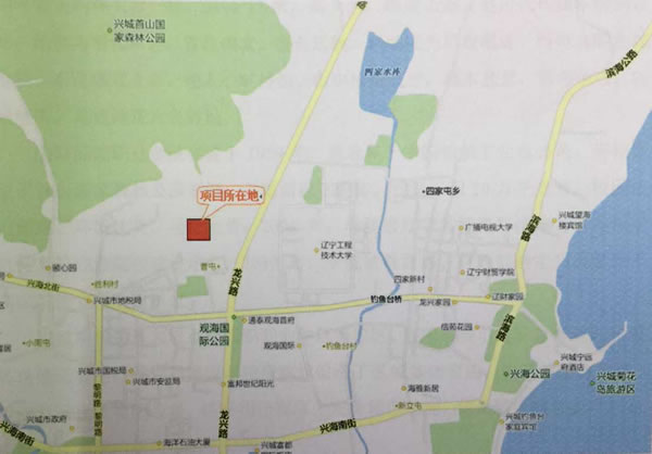 項(xiàng)目位于興城市曹屯,臨近渤海船舶職業(yè)學(xué)院新校區(qū),中心坐標(biāo)為東經(jīng)120°45′4996″、北緯40°37′2628″。具體位置見(jiàn)圖3-1。