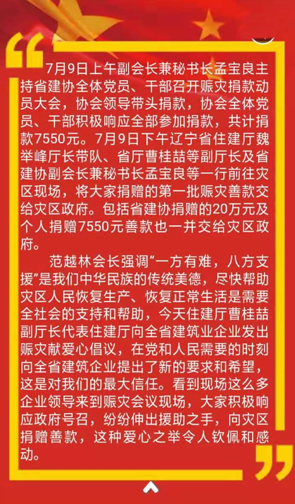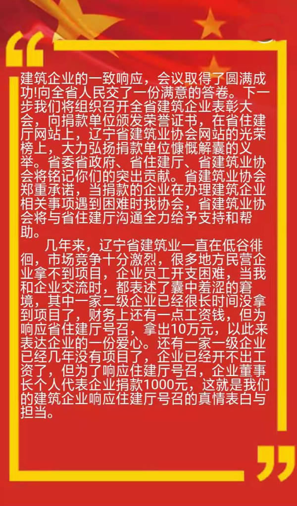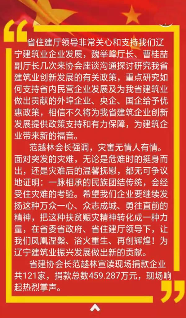 全省建筑業(yè)企業(yè)賑災動員大會在沈陽隆重召開
