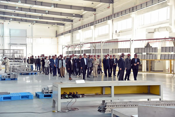 省住建廳領(lǐng)導(dǎo)、省建協(xié)領(lǐng)導(dǎo)及與會代表參觀1#車間-鋁模板生產(chǎn)車間