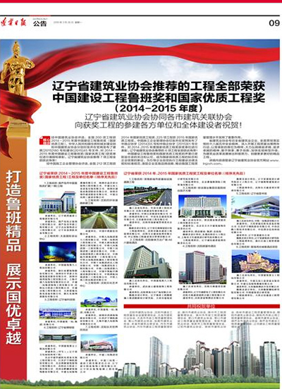 遼寧省建筑業(yè)協(xié)會推薦的工程全部榮獲中國建設(shè)工程魯