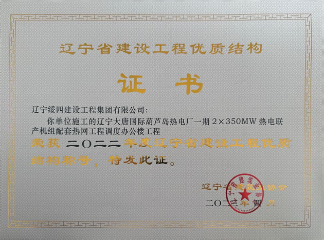 | 遼寧大唐國際葫蘆島熱電廠一期2X350MW熱電聯(lián)產(chǎn)機組配套熱網(wǎng)工程調(diào)度辦公樓工程榮獲2022年度遼寧省建設(shè)工程優(yōu)質(zhì)結(jié)構(gòu)稱號 |